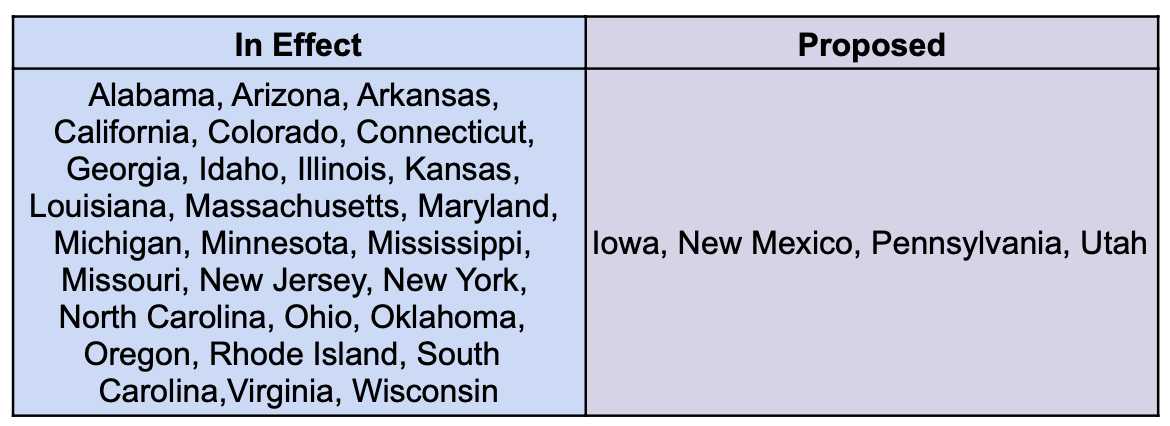 States have been working to get around this limitation for their citizens, though, and “SALT pass-through workarounds” or “pass-through entity taxes” have been adopted in many states and were recently blessed by the IRS as legit. Many states have implemented these (see table below), and they vary by locality, but the idea is that the pass-through entity (LLC or S Corp) can elect to pay the personal taxes of its owners through the corporation itself.